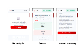 LNK Media Bias Analyzer, haber makalelerinin medya yanlılığını ve güvenilirliğini analiz eden akıllı bir tarayıcı uzantısıdır. Gerçek zamanlı olarak çalışan bu uzantı, LNK.az’ın gelişmiş yapay zeka teknolojisini kullanarak kullanıcıların haberleri daha bilinçli bir şekilde tüketmelerine yardımcı olur. Kullanıcı dostu arayüzü sayesinde, her türlü haber kaynağında yanlılık puanları ve güvenilirlik dereceleri anında görüntülenir.